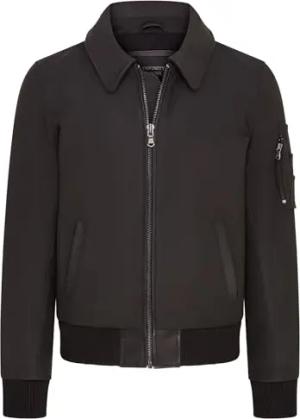 Schwarze Herren-Bomberjacke MA-1 aus weichem Leder im College-Stil