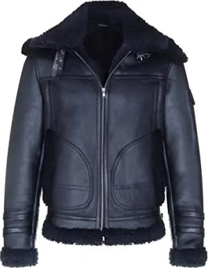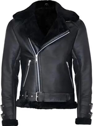 Herren B3 Pilot Echtes Schwarz Schaffell Shearling Motorradfahrer Lederjacke 5XL
