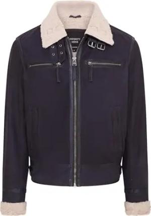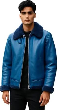 Herren Blau B3 RAF Schaffell Leder Flieger Bomber Fliegerjacke