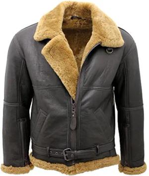 Herren Grau B3 WW2 Schaffell Leder Flieger Pilot Bomber Jacke