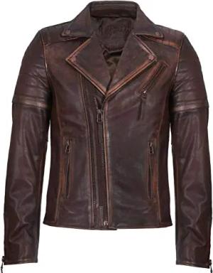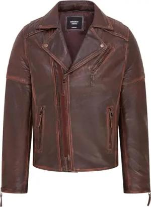 Herren Braun Schlank Fit Kreuz Zip Jahrgang Brando Bikerjacke aus Leder XS