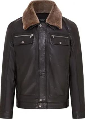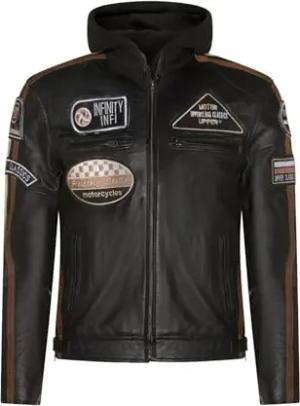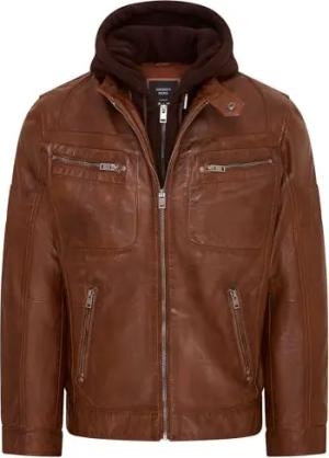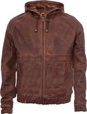 Herren Bräunen Bikerjacke Aus Leder Mit Nappaleder Und Kapuze M