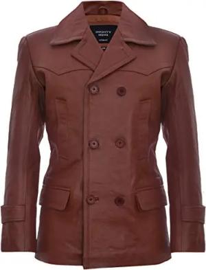 Herren Bräunen German Marine Dr Who Kuhfellleder PEA Mantel XL