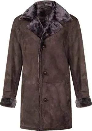 Herren Braunes Schaffell echtes Shearling klassisches Wildleder Erbsenmantel XS