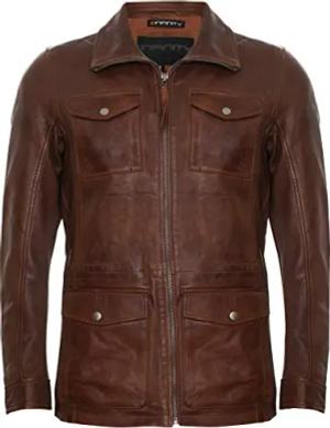 Herren Casual Bräunen Braun Lederjacke Mit Regenmantel Mit Mehreren Taschen 2XL