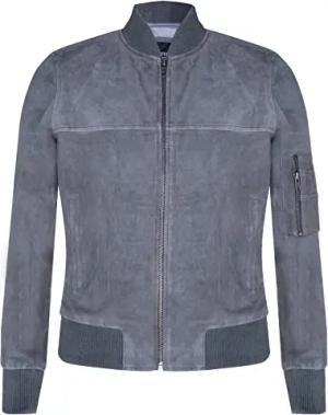 Herrenjacke 100% Echtleder Klassischer Ausschnitt Wildleder Tailored Fit Bomber Design S