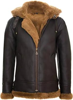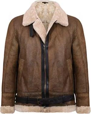 Herrenjacke Echtleder Schaffell Aviator Piloten Design Bomber B3 Still Braun Ingwer