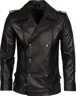 Herren Klassisch German Marine Militär Peacoat Schwarz Rindleder Lederjacke L