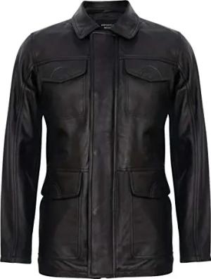 Herren Klassisch Schwarz Echtes Leder Safari Parker Graben Jacke XS