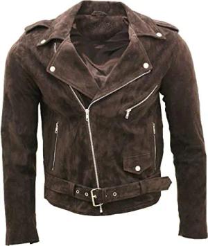 Herren Klassische Braun Brando Beiläufig Bräunen Wildleder Bikerjacke S