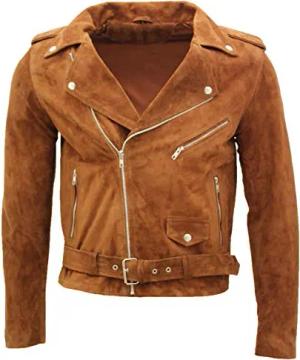 Herren Klassische Braun Brando Beiläufig Bräunen Wildleder Bikerjacke XS