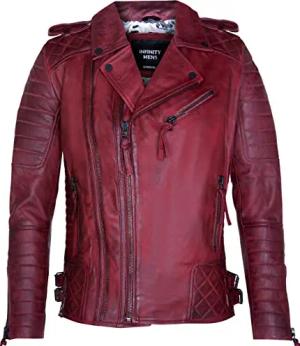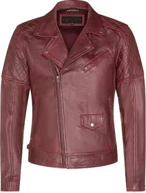 Herrenjacke 100% Echtleder Brando Biker Burgund Design Steppjacke Legerer Stil XS