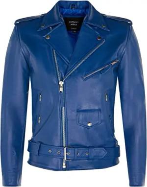 Herren Leder Blau Brando Motorradfahrer Rock Motorrad Kuhfell 3XL