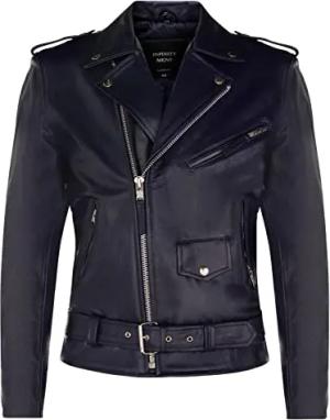 Herren Leder Navy Blau Brando Motorradfahrer Rock Motorrad Kuhfell XS