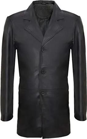 Herren Longh 3/4 Schwarz Cromby 3 Knopf Lamm Nappaleder Blazer Klassisch Harrington Manteljacke 3XL