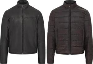 Herren Schwarz Braun Wendbare Leder Puffer Körperwärmer Gepolsterte Weste Gilet XS