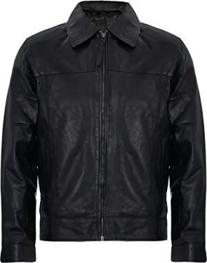 Herren Schwarz Echt Weich Echtes Leder Klassischer Kragen Harrington Jacket XL