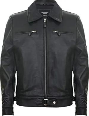 Herren Leder Schwarz Brando Motorradfahrer Rock Motorrad Kuhfell S