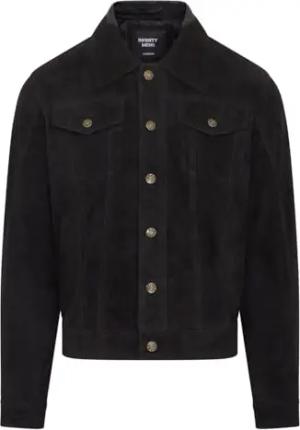 Herren Trucker Jeansjacke aus schwarzem Ziegenwildleder im Western-Stil