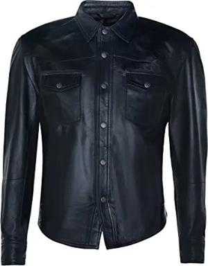 Herrenhemd 100% Echtleder Schwarz LKW Fahrer Design Slim Fit XS