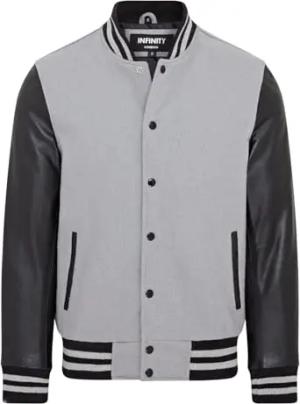 Letterman Baseball Varsity-Bomberjacke aus Grauem Wolle und Schwarzem Leder