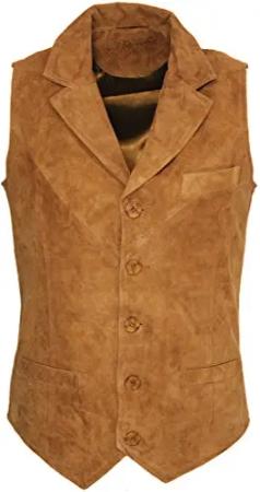 Männer Glatte Ziegen-Veloursleder Classic Smart Bräunen Leder Weste 3XL
