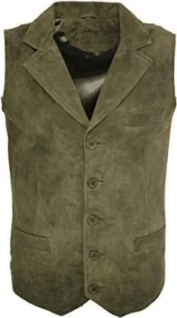 Männer Glatte Ziegen-Veloursleder Classic Smart Khaki Leder Weste 4XL