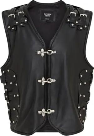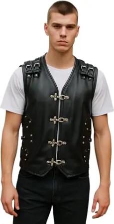 Men’s Black Biker Leather Metal Buckles Vest Gilet Waistcoat