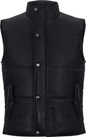 Schwarze Gepolsterte Weste aus Leder Mit Puffer M