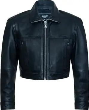 Schwarze, Kurze, Klassische Motorradfahrer Lederjacke Für Damen