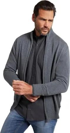 Herren große Größen Menswear L-8XL bis 7XL, Strickjacke, Cardigan mit Stehkragen, Zipper, Rippbündchen, grau Melange 8XL 717032123-8XL