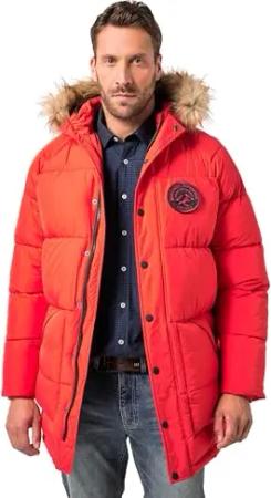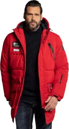 Herren große Größen Übergrößen Menswear L-8XL Stepp-Parka, Kapuze, Webpelz, Badges mohnrot L 841542528-L