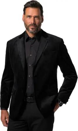 Herren große Größen Übergrößen Menswear L-8XL Samt-Sakko, Revers, Knopfverschluss, bis 72 schwarz 62 833304100-62