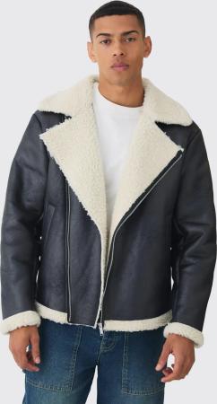 Schwarze Fliegerjacke aus Wildlederimitat mit Borg-Kragen - S, Schwarz