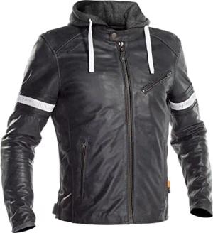 Herren Lederjacke Echt-Leder Bikerjacke mit Sweat- Kapuze Two in One Schwarz S