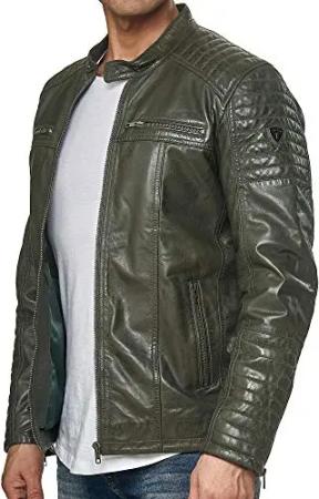 Herren Jacke Lederjacke Echtleder Leder Biker Übergangsjacke 19709 (Khaki, M)