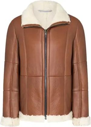 Herren Lammfelljacke PETER aus echtem Leder, Lammfell, Fell, ideal als warme Winterjacke - bequem, warm und hochwertig in Cognac, in Gr. 52
