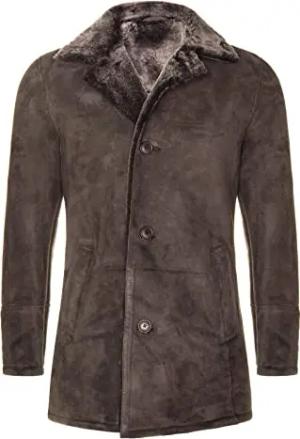 Brauner Schafspelz für Herren aus echtem Shearling, klassischer Wildledermantel aus Leder S