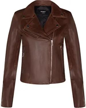 Damen Braun Lederjacke Klassische Bikerjacke Aus Echtem Leder M