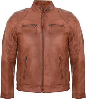 Herrenjacke Bräunen 100% Echtleder Vintage Retro Design Biker Renner Jacke 3XL