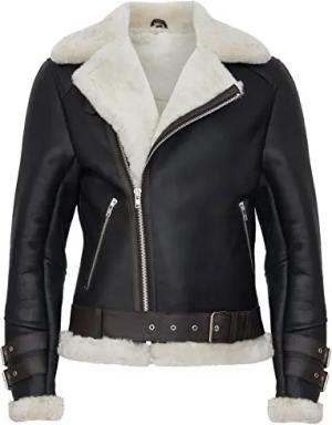 Herren B3 Pilot Echtes Schwarz Schaffell Shearling Motorradfahrer Lederjacke 5XL
