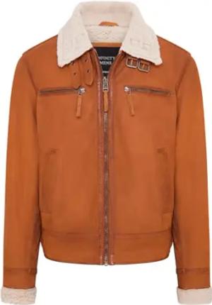 Herren Bräunen Lammfell Leder Bikerjacke Shearling Aviator Gezippt B3