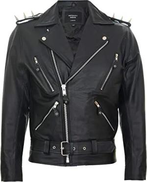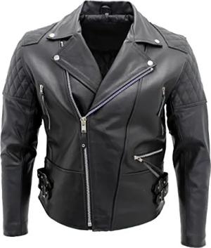 Herren Leder Schwarz Brando Motorradfahrer Rock Motorrad Kuhfell S
