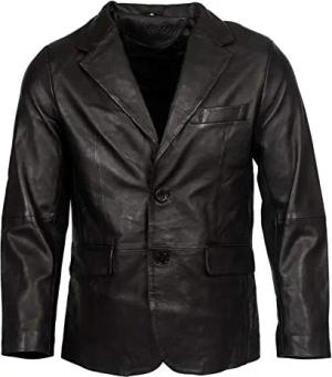 Herren Klassisch Zugeschnitten 2 Taste Schwarz Blazer Weich 100% Lamm Lederjacke 5XL