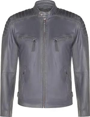 Graue Klassische Kurze Bikerjacke aus Weichem Leder Für Herren