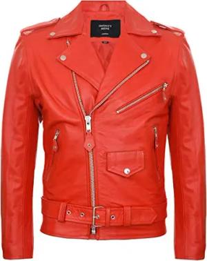 Herren Leder Rot Brando Motorradfahrer Rock Motorrad Kuhfell XL