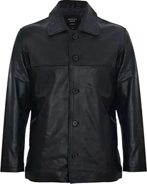 Herren Schwarz Echt Weich Echtes Leder Klassischer Kragen Harrington Jacket XL