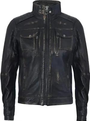 Herren Schwarze Rennfahrer Jahrgang100% Leder Bikerjacke Distressed Motorrad XL