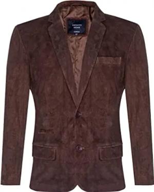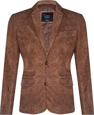 Herren Veloursleder Bräunen Blazer Jacke Weicher Echter Italienischer Ledermantel