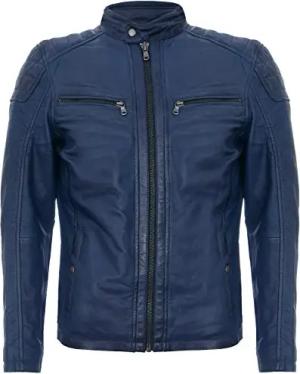 Herren Leder Blau Gesteppt Rennsport Lässig Biker Jacke